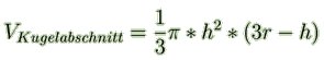 Um das Volumen des Spiegels zu berechnen, muß noch das ausgeschliffene Volumen abgezogen werden (bei einem 8" f/6 etwa 30 Kubikzentimeter). Da bei Newton-Spiegeln die Abweichung des Paraboloids von der Kugelform nur wenige Mikrometer beträgt, kann in sehr guter Näherung das Volumen eines Kugelabschnittes genommen werden: